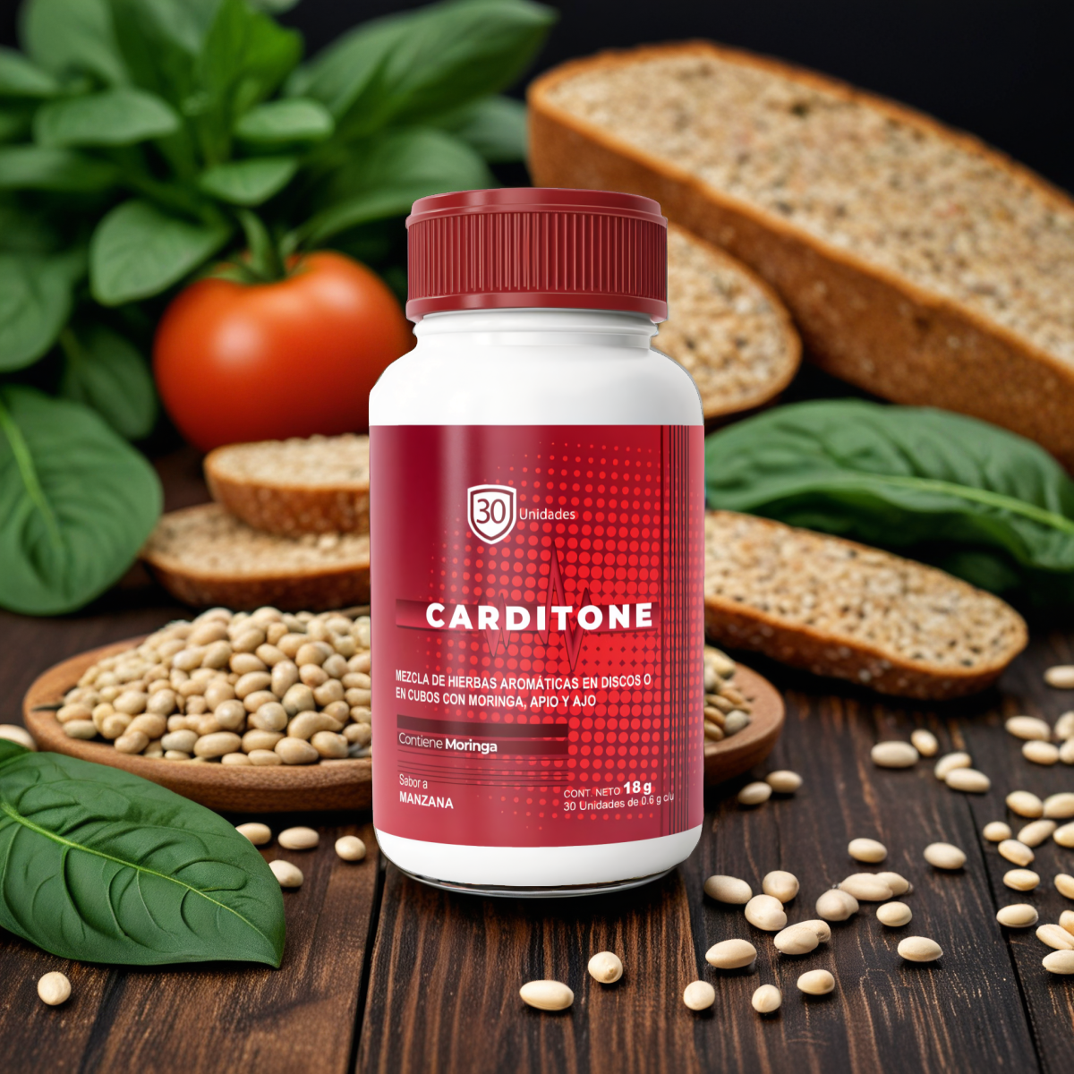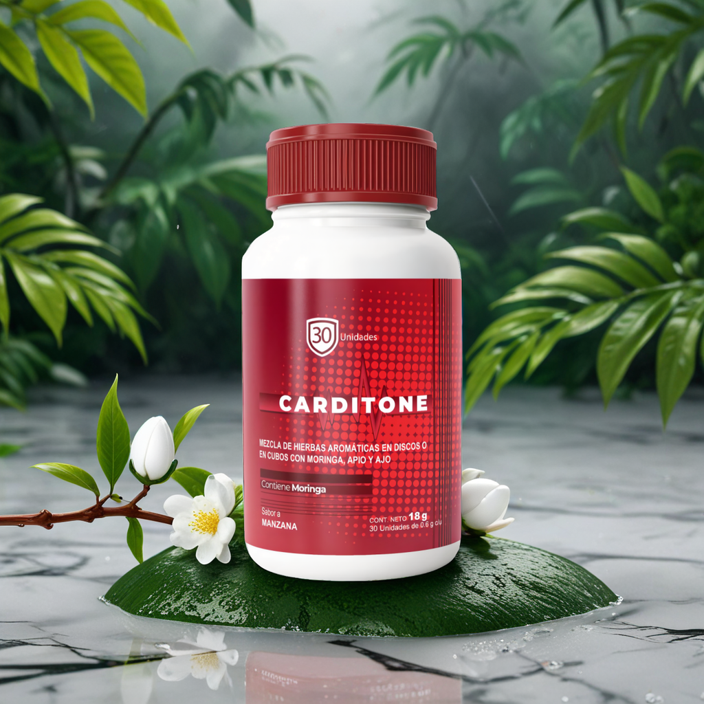 Carditone es un suplemento natural creado para promover la salud y el bienestar a través de sus ingredientes seleccionados con esmero. Esta formulación incluye menta verde, manzanilla, extracto de moringa oleifera y extracto de apio, cada uno reconocido por sus propiedades beneficiosas. La sinergia de estos componentes busca respaldar el bienestar general, potenciando la vitalidad y el equilibrio en la vida cotidiana.